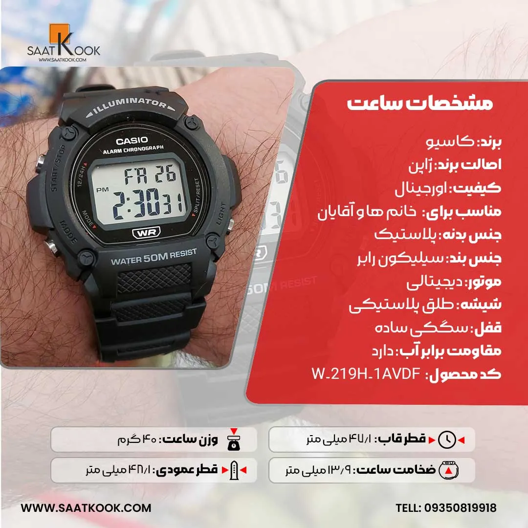 ساعت مچی اسپرت کاسیو مدل CASIO W-219H-1AVDF