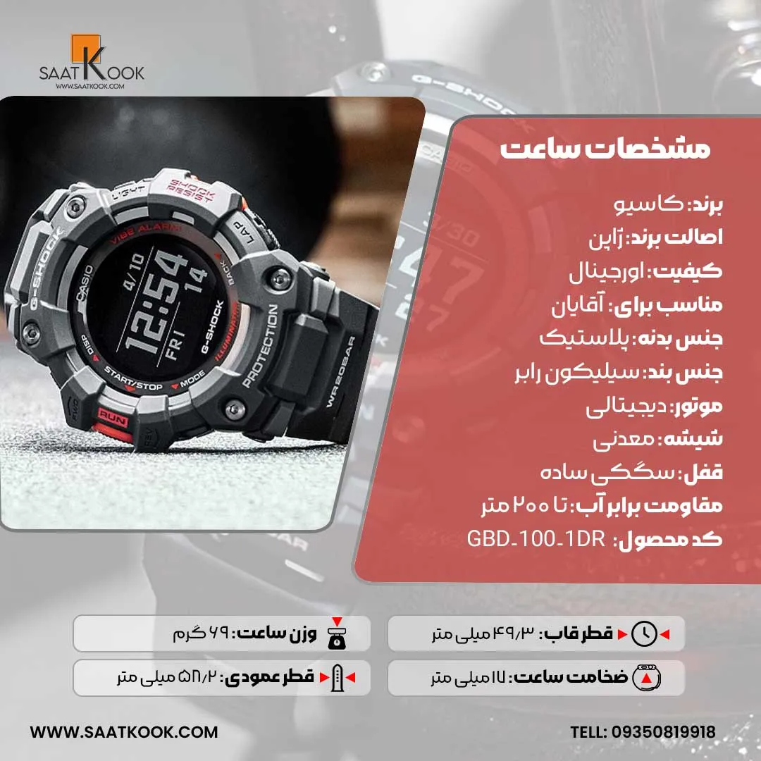 سرسخت مثل کوه جی شاک مدل GBD-100-1DR جی شاک در اصل برای استفاده در ورزش، فعالیتهای نظامی و سایر فعالیتهای پرحادثه طراحی شدهاند.به طور کلی علاقه مندان سری ساعتهای جی شاک را میتوان افرادی دانست که به دنبال ساعتی متفاوت از مدلهای امروزی هستند.این سری از محصولات کاسیو برای اولین بار در سال ۱۹۸۳ طراحی و ساخته شد.جی شاک مدل GBD-100-1DR و از همان ابتدا بسیار مورد استقبال قرار گرفت و تا به امروز با پیشرفت بسیاردر تکنولوژی ساخت و طراحی استایل سبک منحصر به فرد خود را در میان دیگر ساعت های مچی دارا میباشدو در نوع خود میتوان جی شاک رو در رده اول از نظر طراحی و کیفیت ساخت در میان دیگر برند های ساعت مچی سبک اسپرت ورزشی دانست