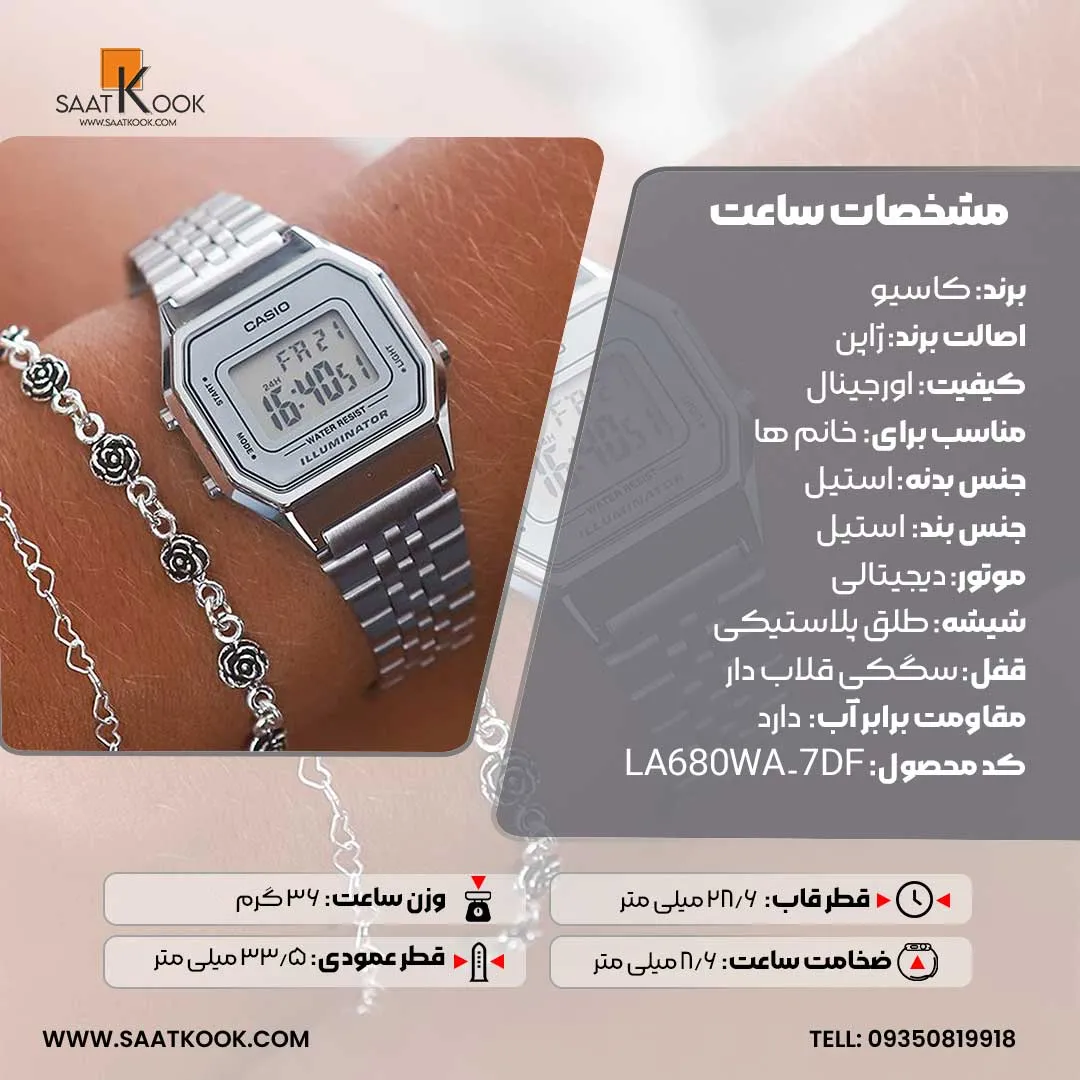 مشخصات ساعت مچی کاسیو مدل LA680WA-7DF